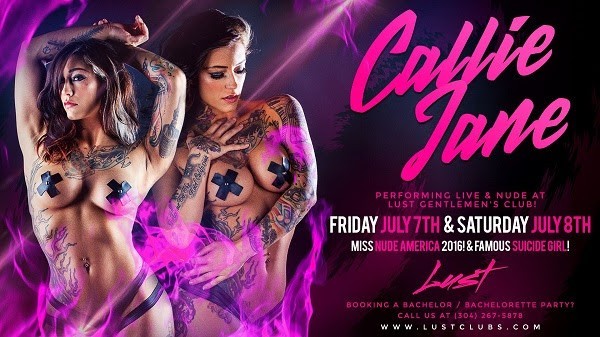 Callie Jane will be feature dancing at Lust Gentlemen’s Club in Martinsburg, WV on Friday, July 7th and Saturday July 8th, 2017.