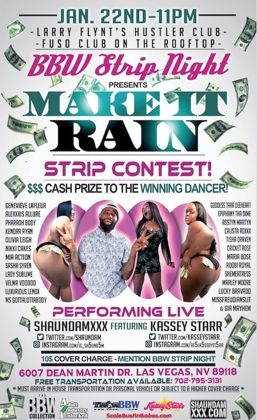 Another aspect of the BBW Awards Show that people are getting excited about is the after party featuring the BBW Strip Night and the Make It Rain Strip Contest. Over 30 girls including Alexxxis Allure, Genevieve LaFleur, Gia Mayhem, Tisha Daven, Calista Roxxx, Lady Sublime, and many more will be competing for a cash prize. There will also be a live performance by Shaundam featuring Kassey Starr. Attendees of the BBW Awards Show can attend for free. Anyone else pays a $10 cover charge if they mention “BBW Strip Night” at the door.