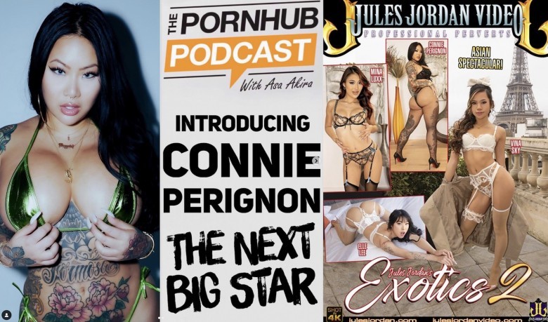 Connie Perignon met Akira on social media, and the two bonded. Now, Connie is guesting on her hugely popular Pornhub Podcast. Asa opens the episode by saying Connie is the next big porn star, and she wants to be on the record for officially calling it. They two talk about the similarities between them and have a lot to discuss, including Connie blowing up after four months in adult, Jules Jordan reaching out to her and getting her start, her marketing background, professionalism in the industry, the differences between sugaring and escorting, traveling around the world, weird ways guys get off, and much more.
