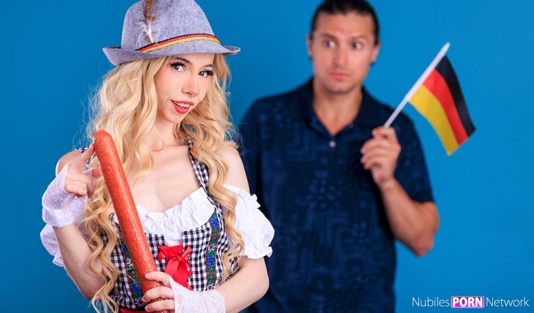 Hot spinner with perky boobs and a firm ass, Kenzie Reeves has always been a Nubiles fan favorite that brings the members to their knees with her smoking hot scenes. Previously a Flavor of the Month for June of 2021, Kenzie has been crowned with the title again as the October 2022 Flavor of the Month. The scene opens with Kenzie dressed in full Oktoberfest regalia and a hot little fantasy of her working in a Biergarten. Sucking on giant sausages, she’s signaling what she really wants to her stepbrother, Jay Romero. When she drops more blatant hints, and he doesn’t get it, she tells Jay she’s learned some German. Now that she piqued his interest, she drops in German that she wants to fuck her stepbrother, drops to her knees, and gives him one of her award-winning blowjobs. Then, they take it to the kitchen counter in multiple positions on their tasty adventure.