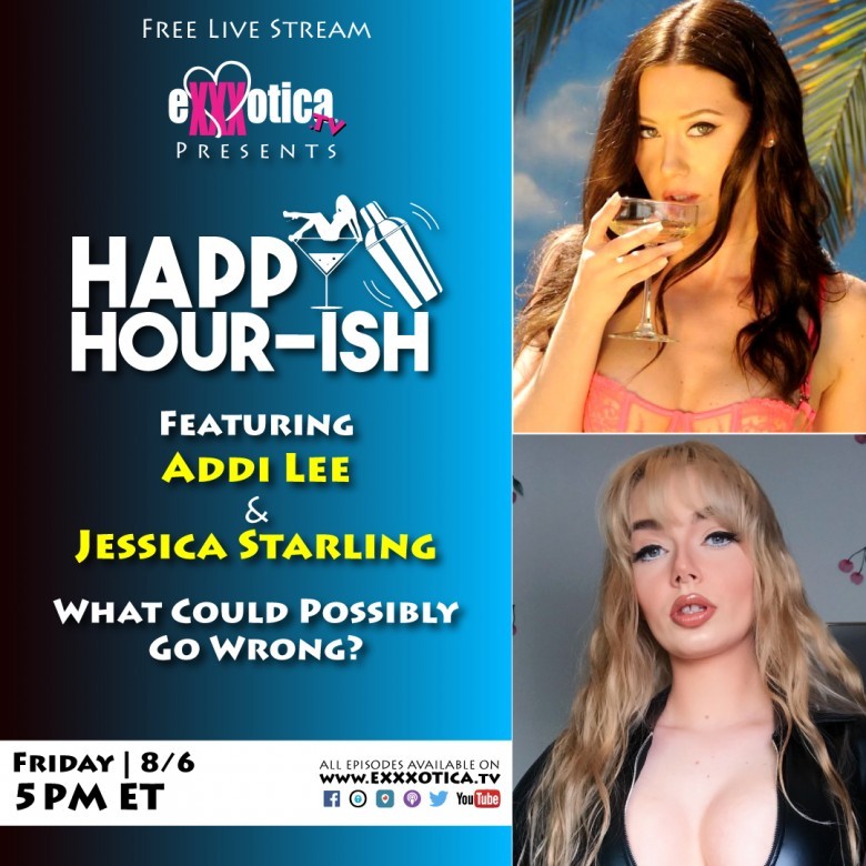 This Friday, August 6th, at 2pm PST/5pm EST, grab an adult beverage, your phone, tablet, or computer, and tune into EXXXXOTICA’s Happy-Hour-ish live show. Jessica Starling and Addi Lee will join hosts J and Dan to chat about everything from adult to sports and beyond. The live show’s highly entertaining and free to watch.