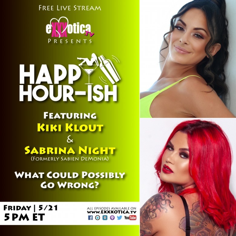 Get your weekend started the right way—watching porn stars live online. Tunein at 2pm PST/5pm EST to EXXXOTICA’s Happy Hour-ish with guests Sabrina Night and Kiki Klout and hosts J and Dan. The highly entertaining one-hour show covers anything and everything from adult to sports. It’s a great way to kick off the weekend with an adult beverage or two.