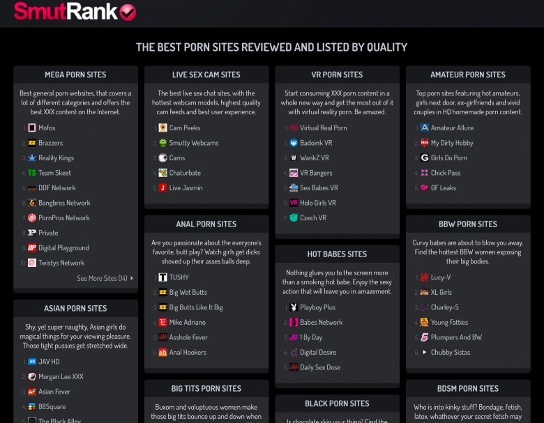 The site I’m talking about has a pretty cool name and it’s called SmutRank. And yes, they specialize in listing and ranking good/best XXX content websites.