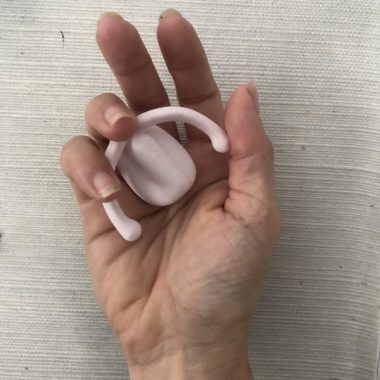 Eva was designed to offer hands-free AND strap-free clitoral stimulation. Most clitoral vibrators that are not handheld either attach to a penis or require stepping into unseemly elastic straps. Instead, Eva sits like an oval stone atop the clitoris and its two thin arms nest inside the labia, keeping it secure and spreading out the sensation.