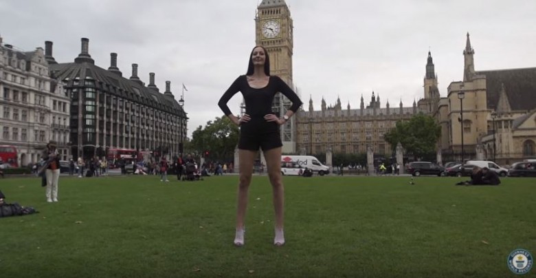 Model and former basketball player Ekaterina Lisina of Russia boasts the Guinness World Record for World's Longest Legs (female). The 29-year-old stands a total of 6'8.77" and her legs each measure 52 inches (the left one is a tad longer).