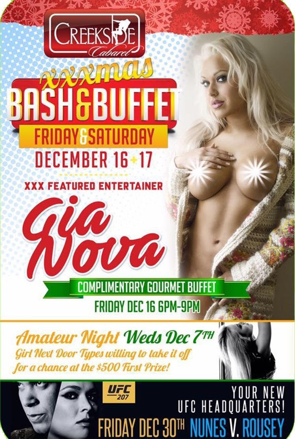Gia Nova will be performing 2 shows nightly. Between shows she will be mingling with the guests, taking photos and doing lap dances. “I can’t wait to rock the stage at Creekside Cabaret Gentlemen’s Club and party with my fans!” says Gia Nova. These shows will definitely be standing room only - so make sure to get there early.