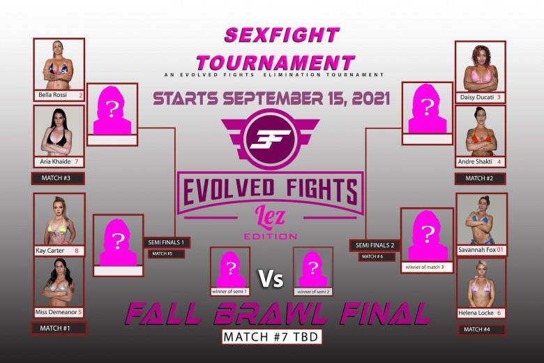 On September 15, the highly anticipated eight-woman bracket-style tournament kicks off with Match #1 with Miss Demeanor vs. Kay Carter. Match #2 will be Daisy Ducati vs. Andre Shakti. Match #3 is Aria Khaide vs. Bella Rossi. And Match #4 Savannah Fox vs. Helena Locke. The Winners of Match #1 and Match #3 will head to the Semi-Finals and so will the winners of Match #2 and Match #4. The two winners of the Semi-Finals will head to the Finals to wrestle it out for the title.
