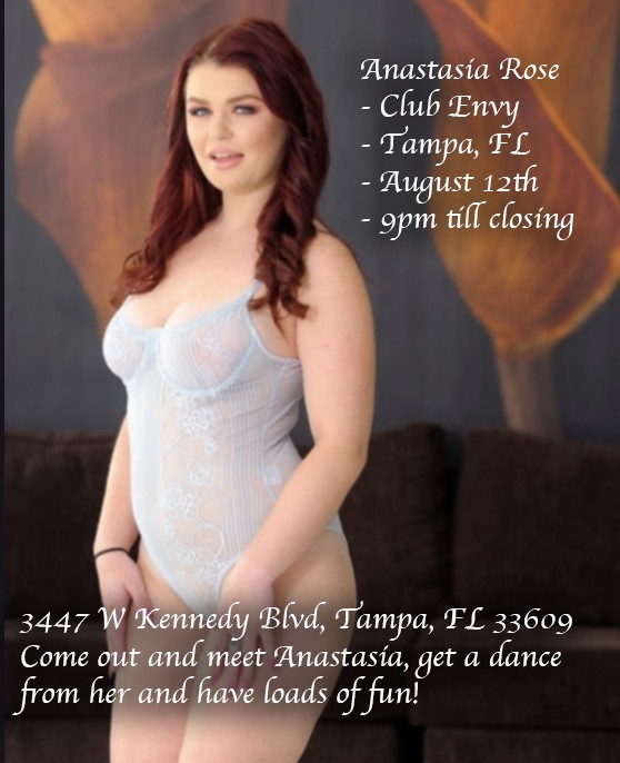 Tampa has a lot to be excited about—it’s the only city you’ll find Anastasia Rose headlining this weekend. On Friday, August 12th, from 9pm to closing, she’ll be featuring for one night only at Club Envy. Fans can see her take the main stage twice, and they should be ready for a highly interactive show. Anastasia will also have multiple meet and greets where her fans and club patrons can meet her, snap a selfie, and buy her merch. Anastasia will also be for lap dances in one of the 10 VIP rooms the club boasts.