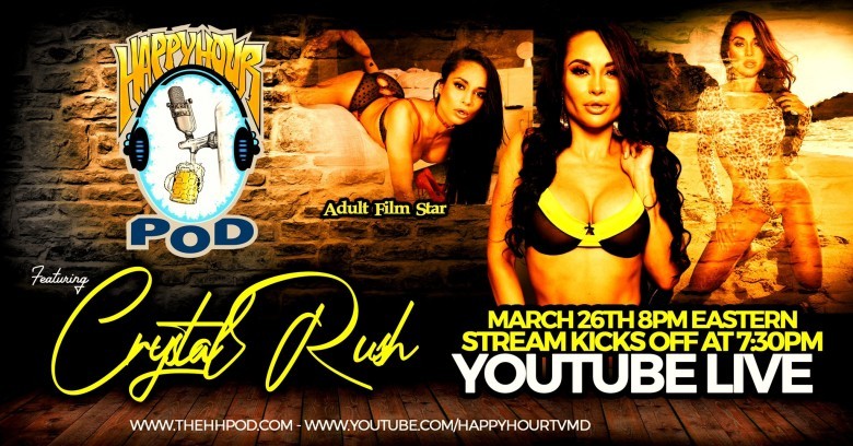 (Los Angeles, CA) Russian XXX Minx and fit glamour model Crystal Rush is guesting this weekend on the always entertaining The Happy Hour Podcast and will be part of their live broadcast this Saturday night.