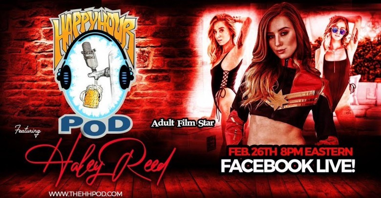 (Hollywood, CA) All-natural, slim, and sexy blonde babe with stunning green eyes known as the slut next door, Haley Reed, is making her first appearance on the irreverent but always entertaining Happy Hour Podcast this Saturday, February 26th.