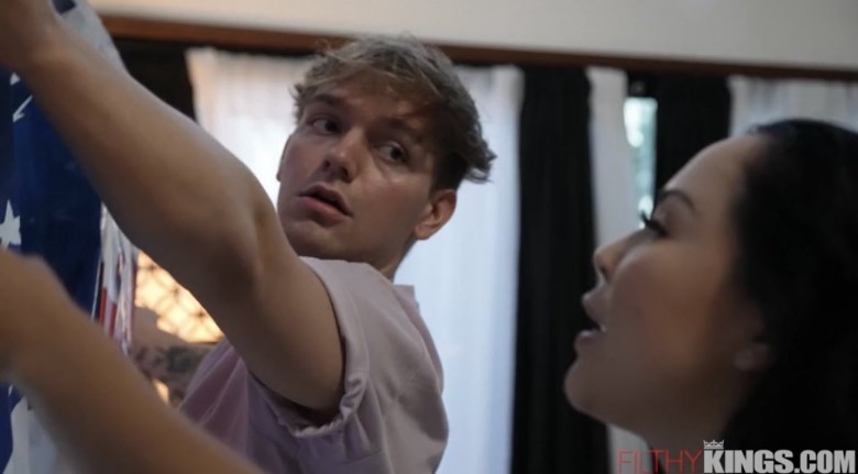 Only the Filthy Kings could combine filthy taboo and Veteran’s Day for one twisted scene. Making his Filthy Kings debut, Joshua Lewis finds out his dad is coming home after being deployed for nine months. He kicks himself for not hooking up with his stepmom Kristina Rose and thinks he’s missed his chance. Joshua is feeling super horny and decides to spy on Kristina as she changes, and he gets caught in the act. He confesses he’s crushing on her, and she decides that they need to get this sexual tension out of the way for the good of the house. Stepmom Christina gives him the BJ of a lifetime and jumps on cock. Joshua takes the reigns and gives her a good pounding, and cums all over her bubble butt. Maybe it’s not the homecoming his dad was expecting, but it’s the one he’s getting.