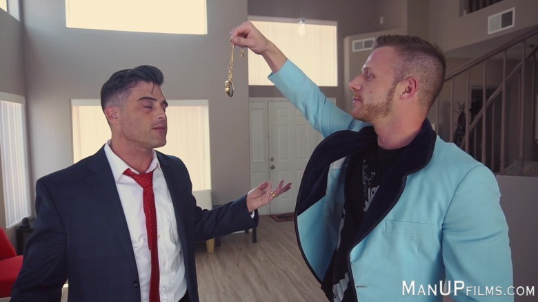 “Mentalist Brian Woods vs. Lance Hart Part 1” continues with the mind games cast on law enforcement theme. Detective Lance is investigating Brian Bond who’s hoodwinking hot men out of all their cash. Lance confronts Brian, but Brian says it’s all free will and whips out his pocket watch to exhibit his mentalist powers. Straight-laced Lance falls under his control and is humiliated and confused, and ultimately put under humiliating suggestions for the night. Will Lance escape his clutches? Watch “Mentalist Brian Woods vs. Lance Hart Part 1” and look for Part 2 on Friday, May 17th.