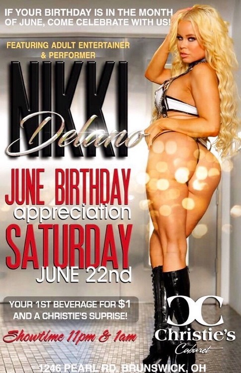 On Friday, Nikki is appearing at Christie’s Cabaret in Canton located at 4465 Everhard Road NW. Her shows are at 11pm and 1am. In between sets, fans and club patrons will get a chance to meet the superstar, take a selfie with her, buy her exclusive merchandise, and/or purchase a VIP lap dance. Go VIP—visit their site christiescabaret.com/christieclubs/clubs/christies-of-canton or call 330.305.0555 for details.