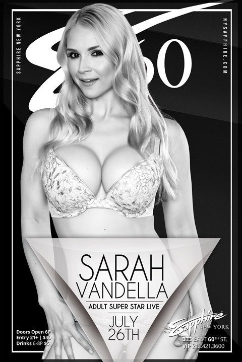 (Hollywood, CA) Award-winning blonde bombshell MILF Sarah Vandella is returning to NYC’s posh gentlemen’s club Sapphire 60 to feature this Friday, July 26th, for one night only.