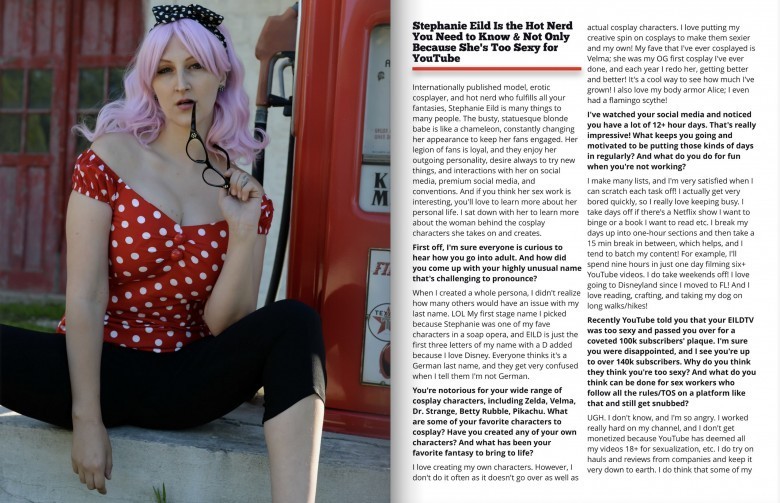 “I love the piece, and the layout is incredible! It really shows off a nice array of my cosplay outfits and looks. I’ve never been in a lifestyle magazine before, and I’m curious to see if their readers want to know more about me and start following me on social media and/or my paid platforms,” says Stephanie Eild.