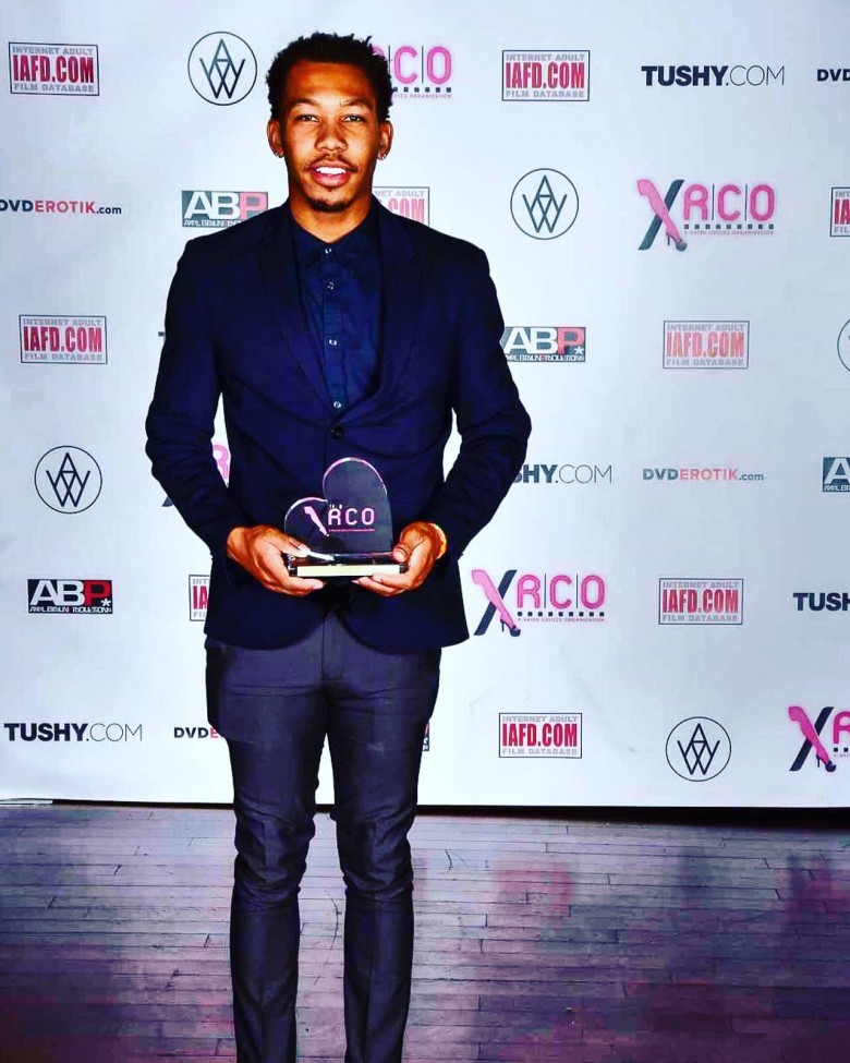 Ricky took home the statue for New Stud at the 2017 XRCOs. He was in attendance and rushed up to the stage to accept his award. The humble, multi-award winning performer thanked all three of his agents at OC Modeling, publicist Erika Icon of The Rub PR, and all the directors and studios who worked with him this last year. As he took pictures backstage in the Winner’s Circle posing with the coveted award, he promised to continue to be the best performer he could be, win future awards, and make his agent and publicist proud.